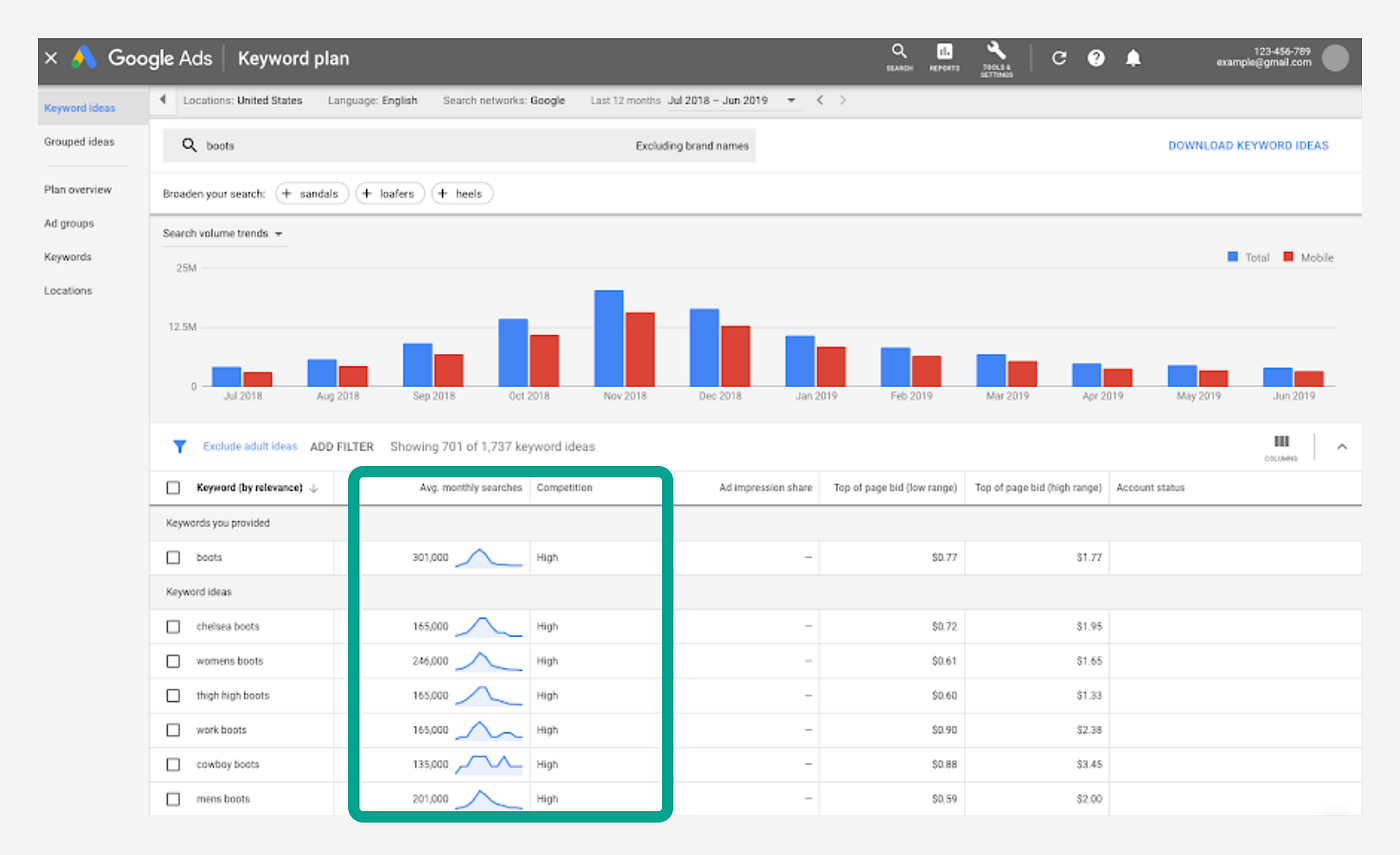 3 • Free: Google Ads’ Keyword Planner offers search volume insights at no cost. The downside is you need to create/have a Google Ads account.